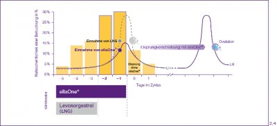 ellaOne® wirkt auch noch, wenn der LH-Anstieg bereits begonnen hat und somit in der fruchtbarsten Zyklusphase.4